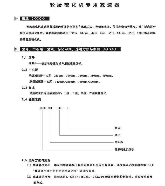 本系列減速器適用于36in、40.5in、42in、46in、55in、63.5in、85in、100in等各種規格的輪胎硫化機。