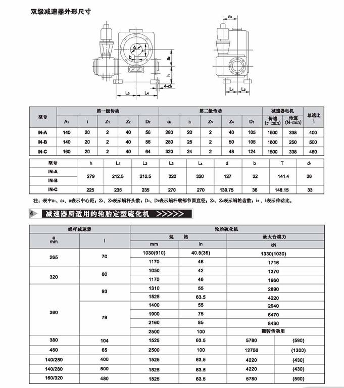 雙級減速器中心距:140mm/280mm,160mm/320mm。
